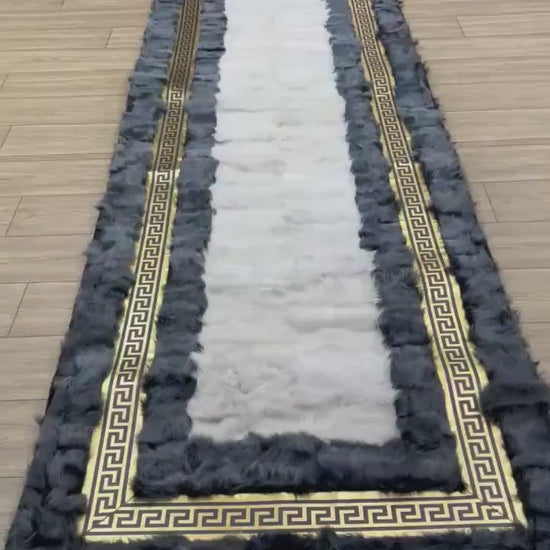 Gray-Gold Sheepskin Patchwork Rug: Handmade Wool Leather Area Rug