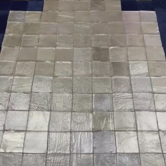 Handmade Gold & Dark Blue Cowhide Patchwork Rug (6x8 ft)