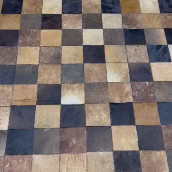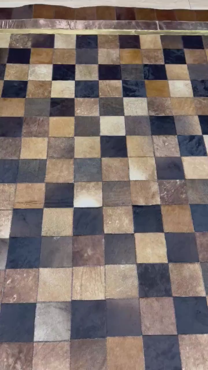 Handmade Tricolor Cowhide Rug: Leather Patchwork Area Rug