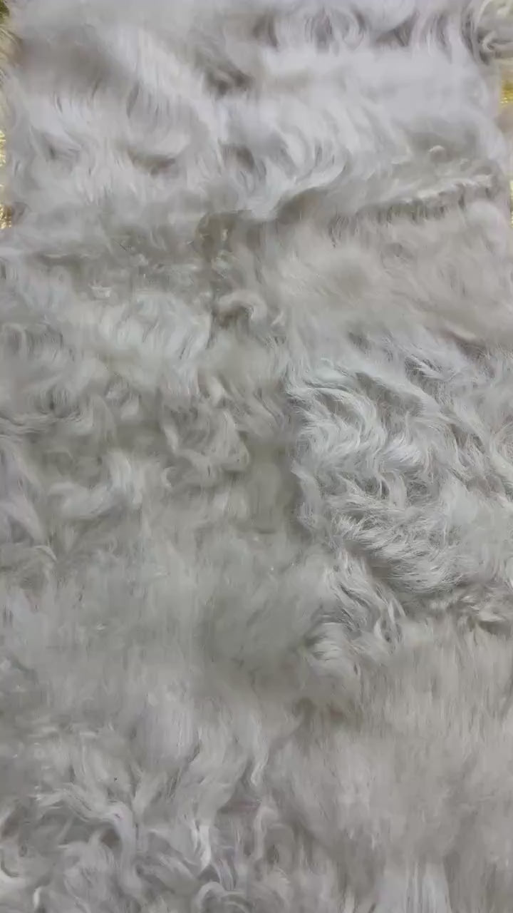 Handmade White Sheepskin Rug: Shaggy Wool Area Rug with Gold Detail